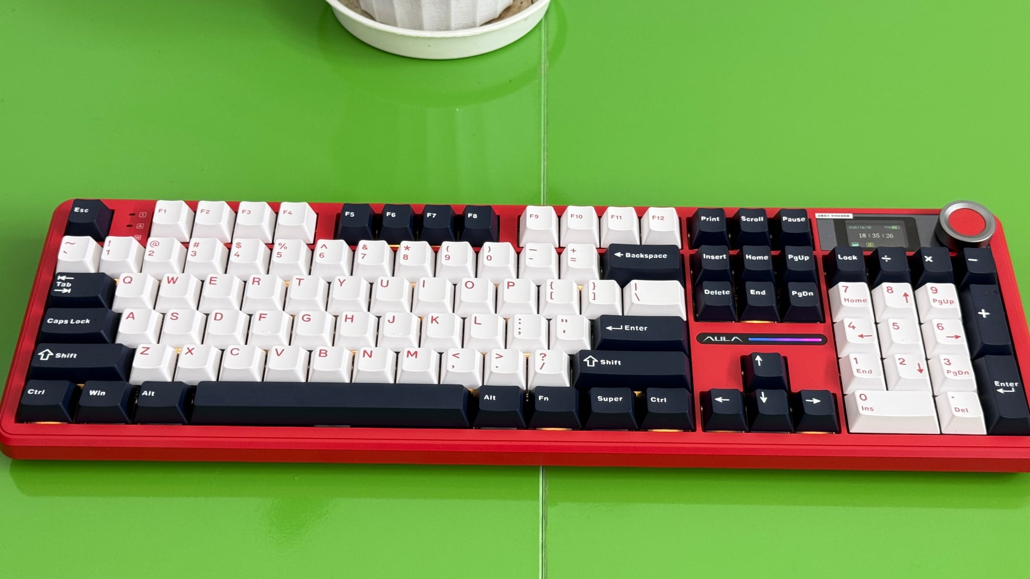Aula F108 Pro là mẫu bàn phím cơ full-size đa kết nối, thiết kế đẹp mắt, gasket-mount êm tay, pin khủng và hệ thống LED RGB rực rỡ. Đặc biệt, màn hình LCD và núm volume tiện dụng khiến sản phẩm trở nên cực kỳ đáng giá trong phân khúc gaming và làm việc chuyên nghiệp.