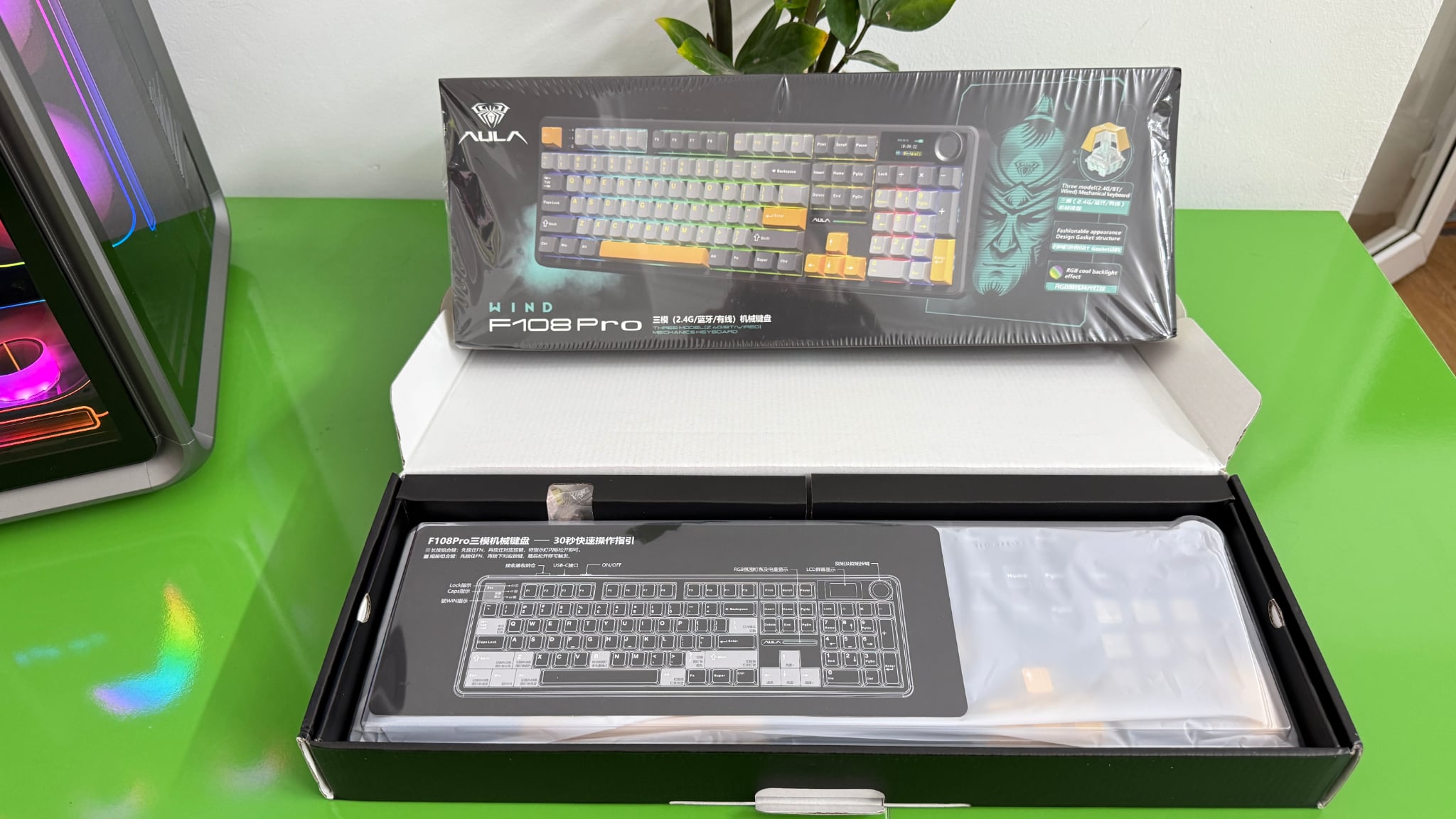Aula F108 Pro – Bàn Phím Cơ Full-Size, 3 Kết Nối, Hot-Swap, LCD & Volume Knob