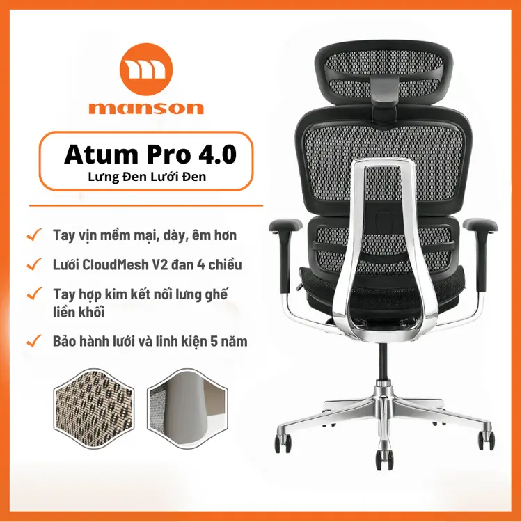 Manson Atum cho bạn cảm giác ngồi nhẹ nhàng, thư thái, sẵn sàng tập trung tối đa cho công việc.