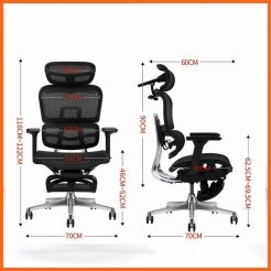 Ghế không chỉ hỗ trợ hiệu quả phần cột sống mà còn nâng đỡ vùng thân trên và cánh tay, đảm bảo tư thế ngồi chuẩn mực và dễ chịu suốt cả ngày dài.