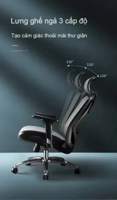 Ghế cho phép ngả lưng tối đa 126° với cơ chế khóa 3 mức độ khác nhau,