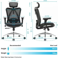 Tựa đầu lớn (29,5 cm), điều chỉnh độ cao 8 cm và xoay 45 độ trước – sau.