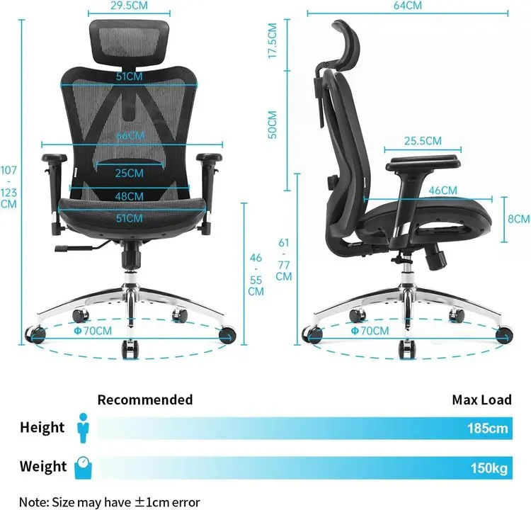 Trang bị piston chịu lực đến 180 kg (chuẩn BIFMA Mỹ), có cần gạt điều chỉnh độ cao 10 cm.