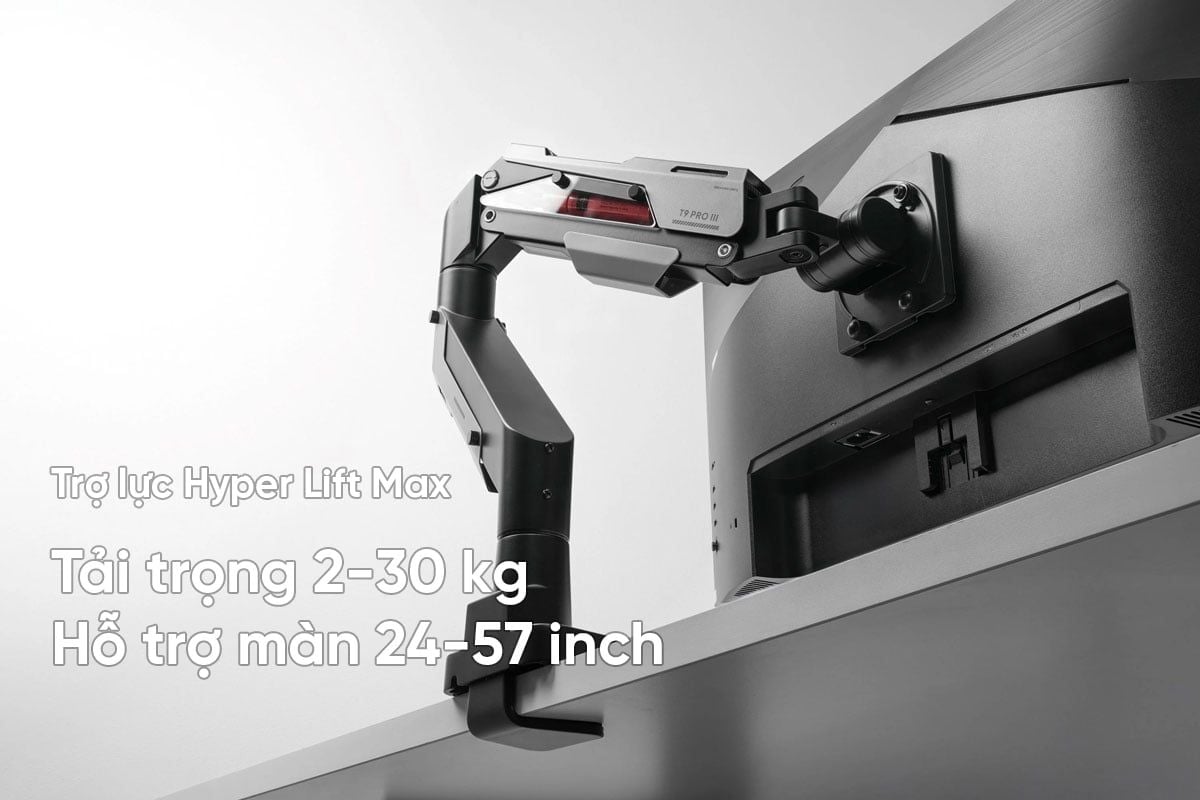 - Công nghệ trợ lực HyperLift Max: Đây là công nghệ piston độc quyền mới, được cải tiến để mang lại hiệu suất nâng đỡ mạnh mẽ hơn 50% so với phiên bản tiền nhiệm. Giúp việc điều chỉnh màn hình nặng trở nên cực kỳ mượt mà và ổn định.