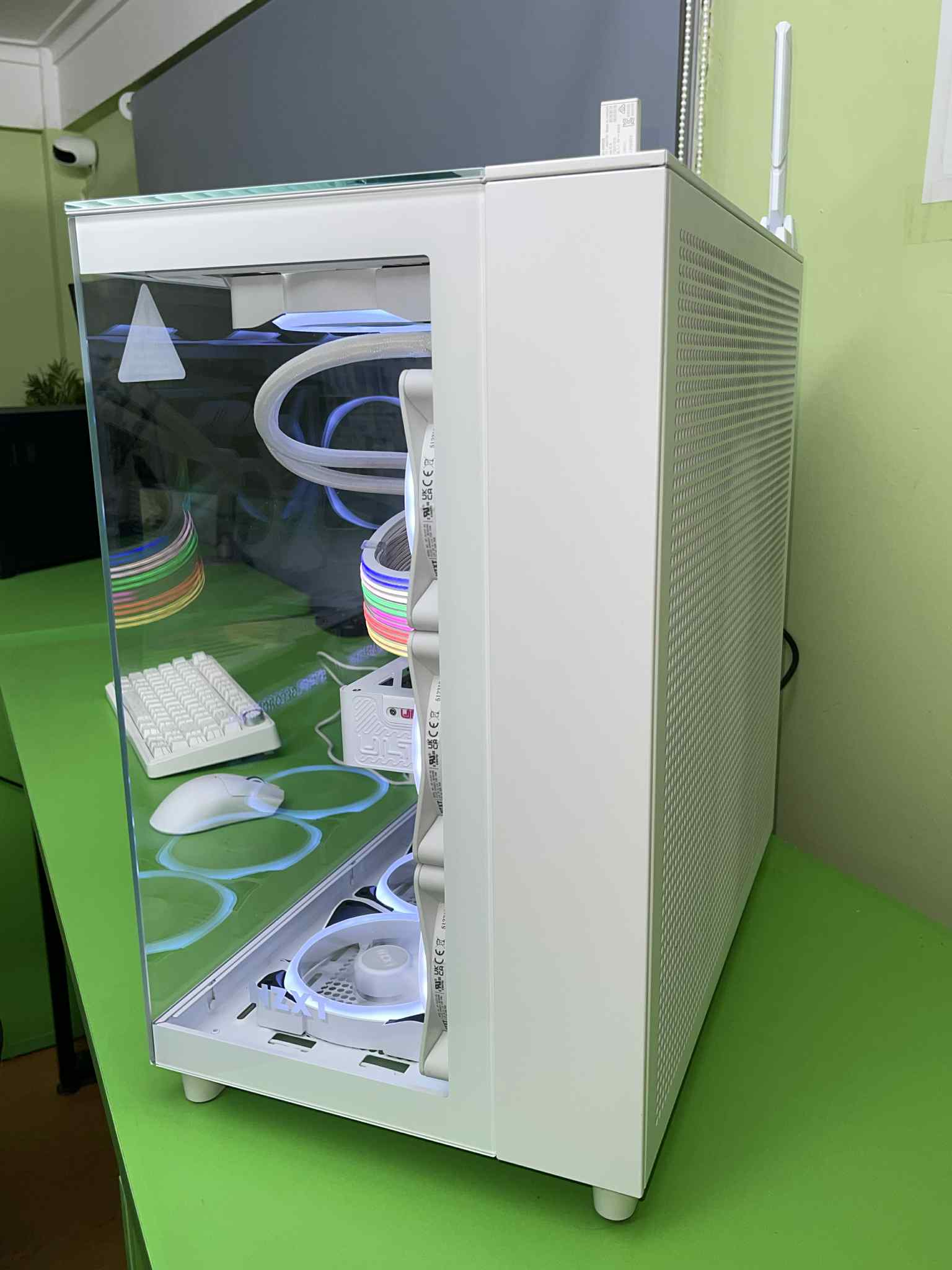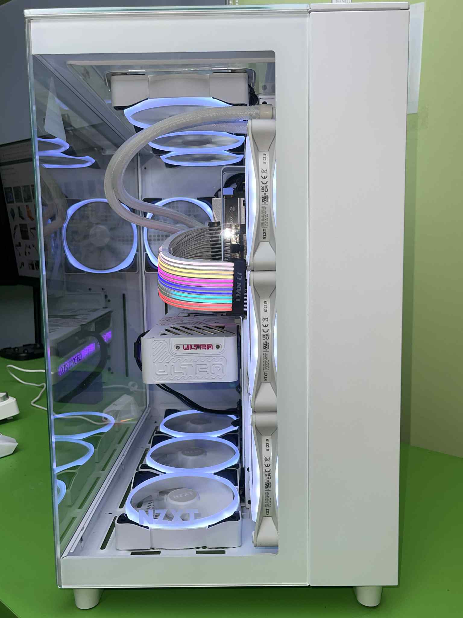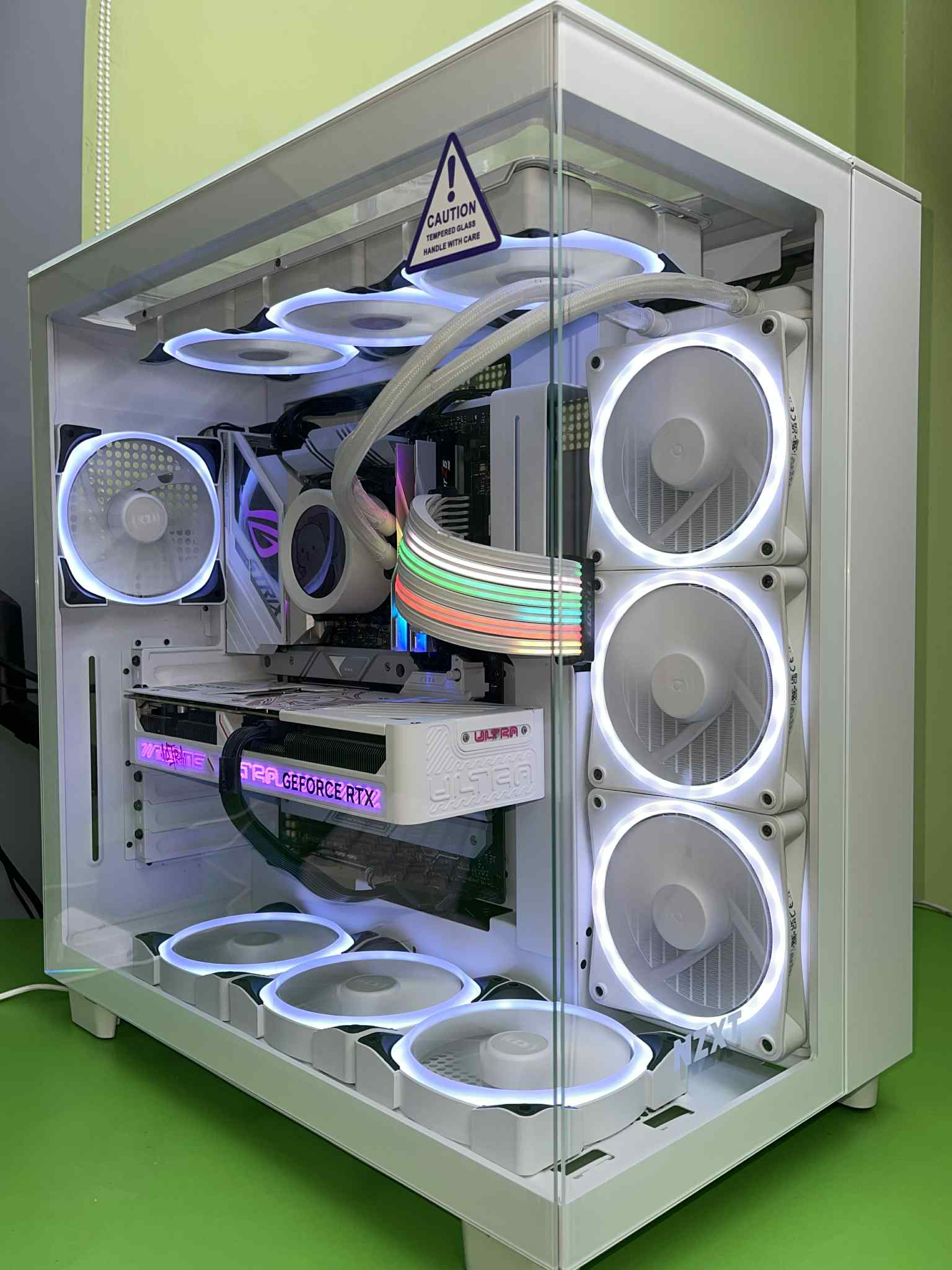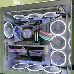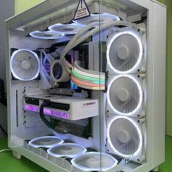 Tất cả những linh kiện mạnh mẽ này được gói gọn trong chiếc Case NZXT H9 Elite White – Full Box Like New. Đây là một trong những mẫu vỏ case được yêu thích nhất với thiết kế kính cường lực toàn cảnh, không chỉ khoe trọn vẹn vẻ đẹp của các linh kiện bên trong mà còn tối ưu luồng không khí. Sáu chiếc Fan NZXT RGB New không chỉ tăng cường khả năng làm mát mà còn tạo nên hiệu ứng ánh sáng đẹp mắt, biến bộ PC của bạn thành một tác phẩm nghệ thuật.