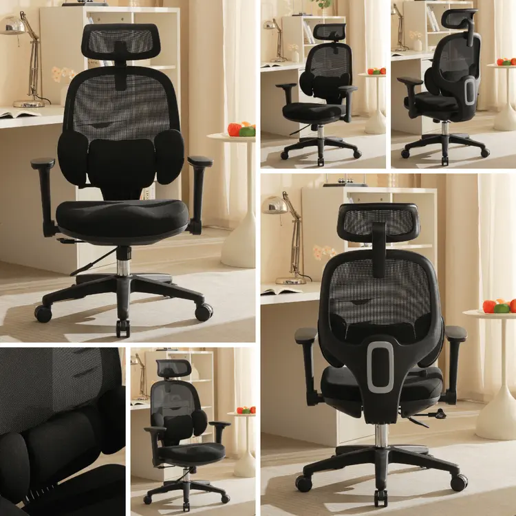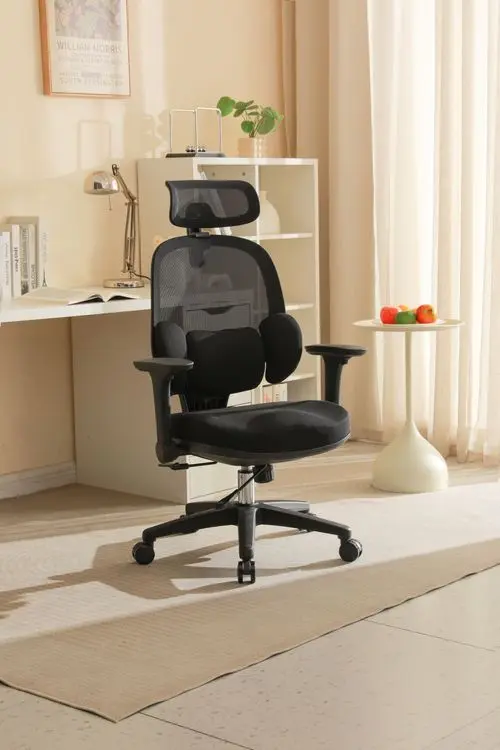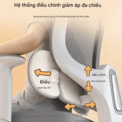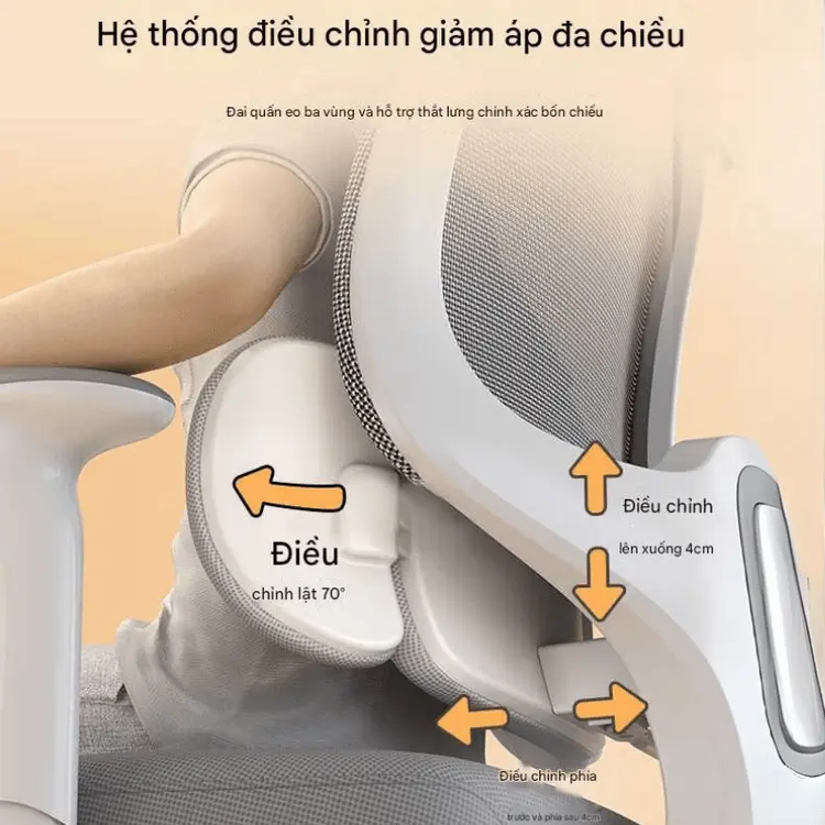 Tựa lưng được thiết kế có phần hỗ trợ thắt lưng điều chỉnh được theo nhiều hướng, ôm sát phần lưng dưới. Điều này giúp giảm áp lực lên cột sống, hạn chế tình trạng đau mỏi lưng do ngồi lâu.